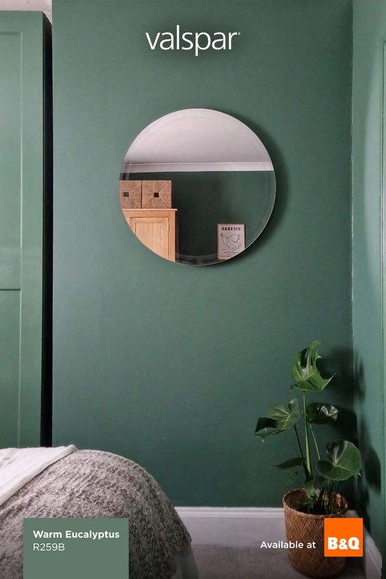 Warm Eucalyptus brings a touch of nature indoors. This muted green with soft warm undertones is inspired by the leafy calm of gardens and retro-inspired palettes. Designers are using it in spaces meant for relaxation, like bedrooms, home offices, and bathrooms, because it has a restorative, soothing effect. It’s subtle enough to feel like a neutral, but interesting enough to give your room personality and depth.